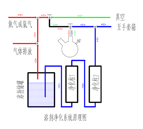 每套凈化系統(tǒng)可處理1種溶劑,對(duì)初始待處理溶劑(水含量不大于500ppm),凈化后的溶劑含水量小于10ppm,氧含量小于10ppm,每種溶劑有效處理量不低于100L,凈化后的溶劑流速接近 1000ml/min(終的凈化效果取決于溶劑的種類(lèi)和溶劑的初始狀態(tài))